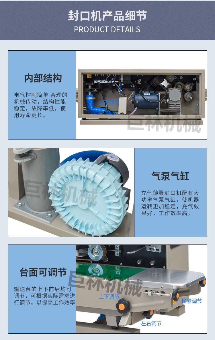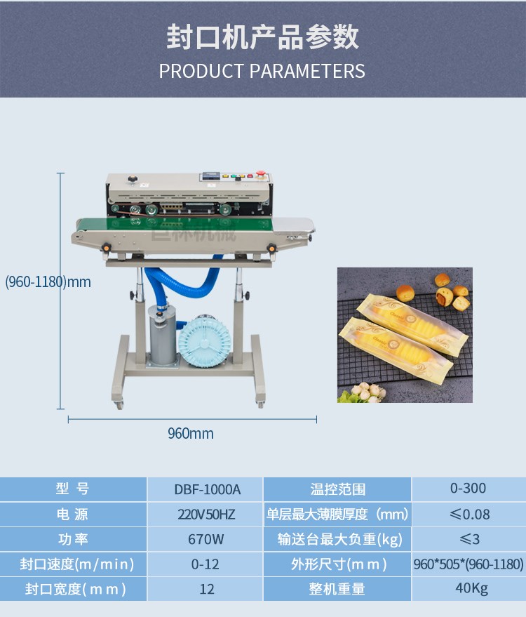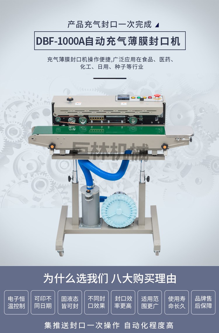名 稱: | 自動(dòng)充氣薄膜封口機(jī) | 型 號(hào): | DBF-1000 |