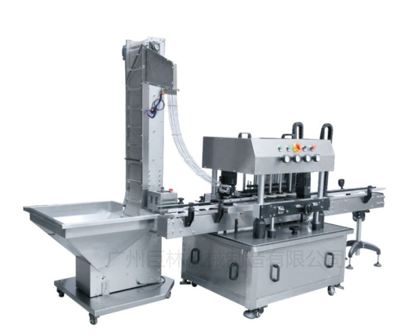 3、瓶子在向前運(yùn)行的過(guò)程中,上蓋器自動(dòng)下蓋,瓶蓋被四組搓蓋輪自動(dòng)擰緊。既可用于單機(jī)生產(chǎn),故障自動(dòng)停機(jī),更是連線生產(chǎn)的理想機(jī)型。